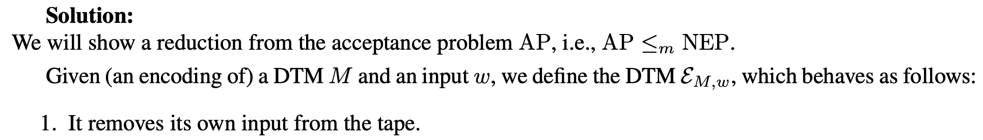 - If the input does not encode a DTM (this can be done by a halting DTM as argued in the lecture), then reject.