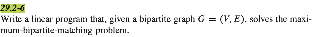 - Solve CLRS4 29.2-5. (CLRS3 29.2-6). Formulate a binary linear program (decision variables are required to be either 0 or 1).