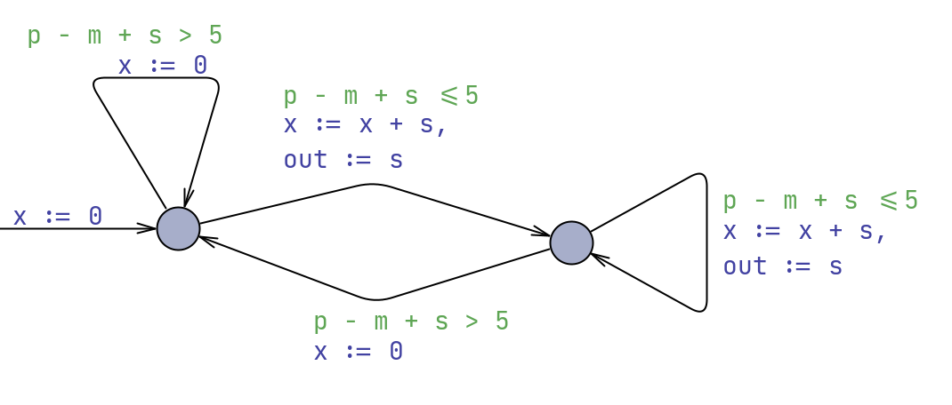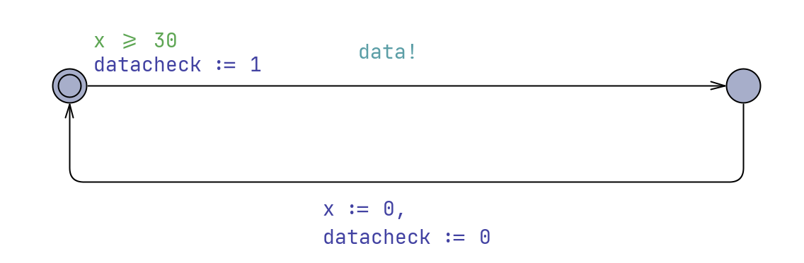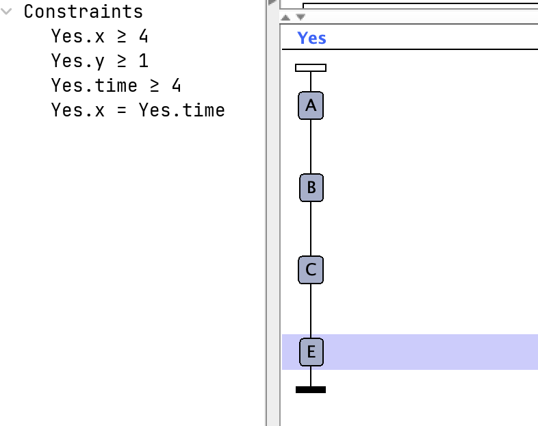 D is not reachable because the guard is x ⇐ 1. if we change it to x ⇐ 4 it is reachable.