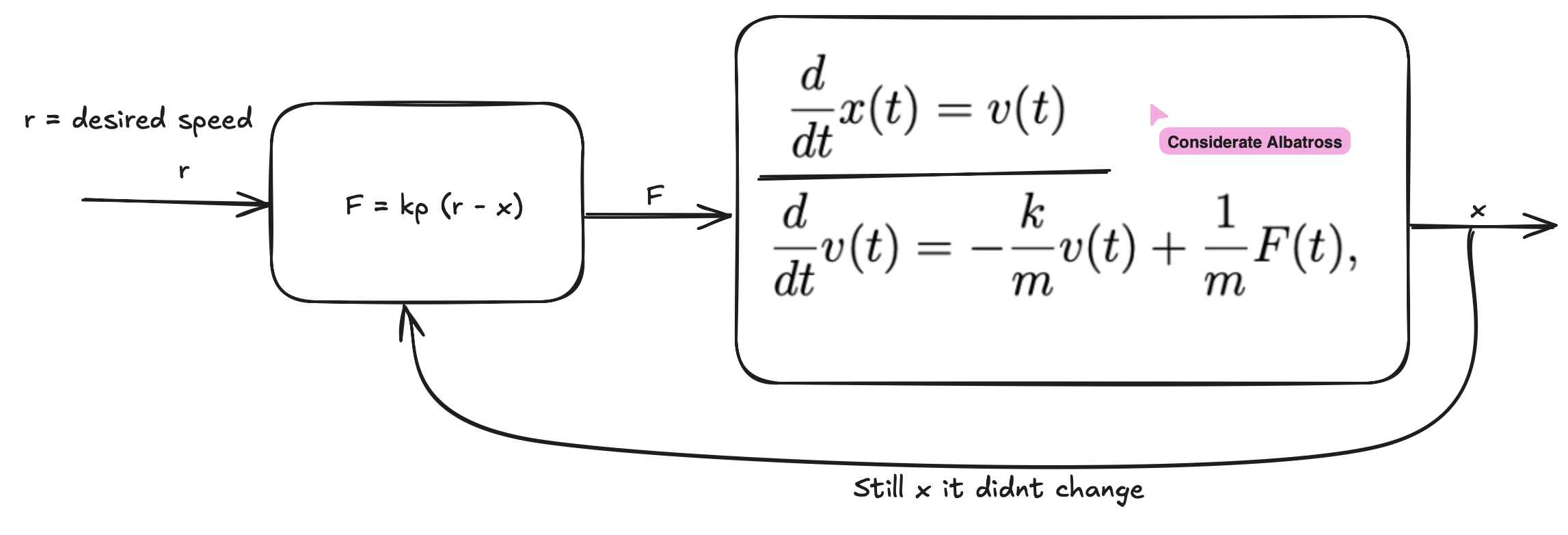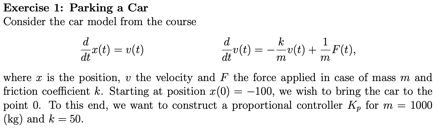 let der_v = -k / m * x[1] + kp * (r - x[0]) / m;