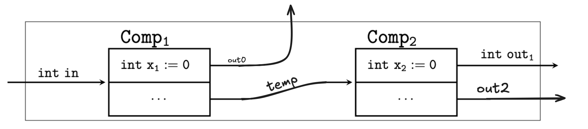 - At: x1 > 10 ∧ x2 ≥ 0 → {temp := −1; x2 := x2 + temp}