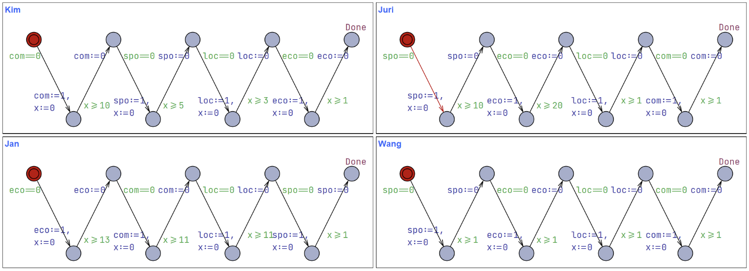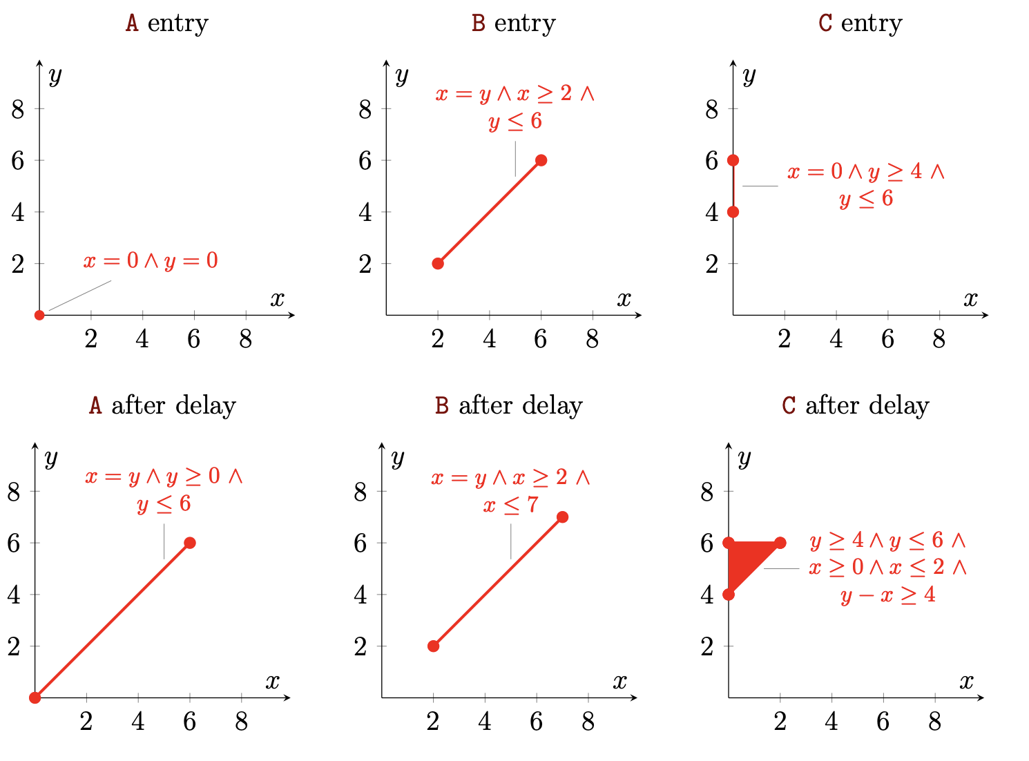 b) (A, x = 0, y = 0) 2 → (A, x = 2, y = 2) → (B, x = 2, y = 2) 2 → (B, x = 4, y = 4) −→ (C, x = 0, y = 4) −→ (E, x = 0, y = 4)