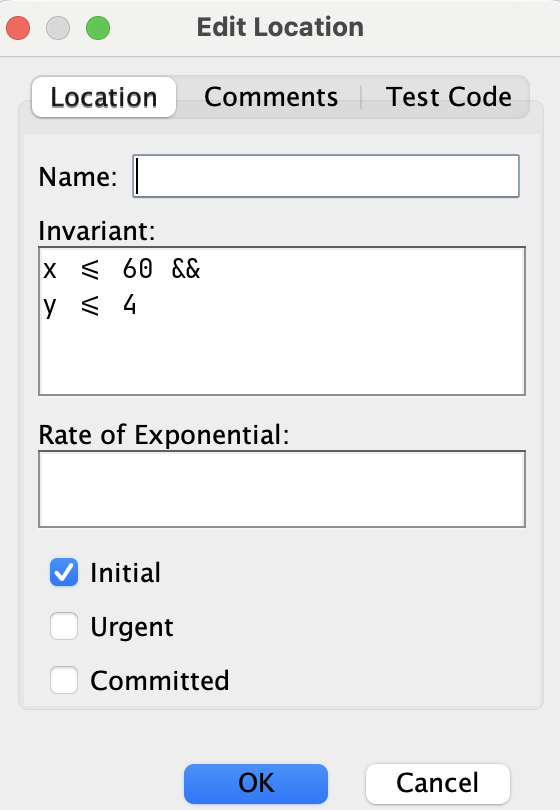 A[] not deadlock- Verifies the system never deadlocks (always has an enabled transition).